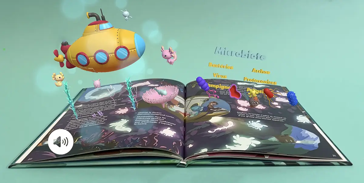 Depuis 2023, nous nous consacrons à une série d’albums jeunesse pour faire découvrir le fonctionnement du cerveau aux enfants. Grâce à une application en réalité augmentée, une dimension scientifique et psychologique vient s’ajouter à l’histoire originale. L’engouement autour du tome 1 sur le stress nous a conduit à développer un second tome, portant cette fois-ci sur le lien entre cerveau, intestins et microbiote.